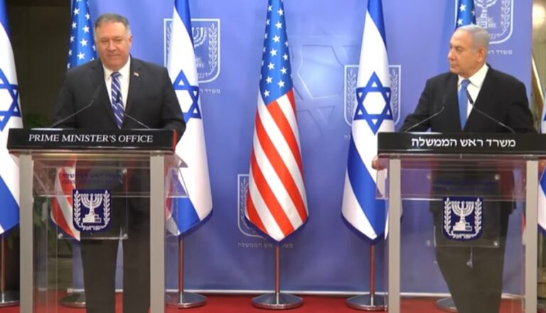U.S. Secretary of State Mike Pompeo landed in Israel on Monday, on the first leg of his Mideast trip to press the momentum of the Trump administration’s Arab-Israeli peace push.
