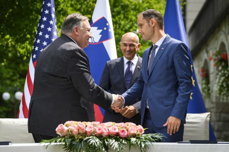 U.S. Secretary of State Mike Pompeo visited Slovenia on Thursday to make the case for high-speed wireless networks that bar Chinese companies like Huawei. On the second leg of a