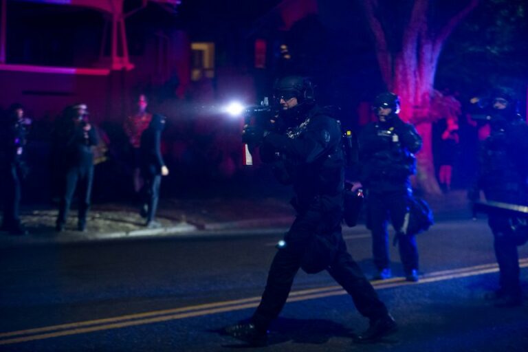 Federal authorities on Saturday forced demonstrators away from a plaza near a federal building as dueling demonstrations in Portland by right-wing and left-wing protesters turned violent. The area includes county