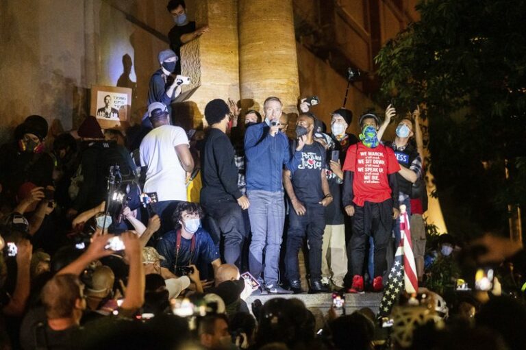 The mayor of Portland, Oregon, was tear-gassed by U.S. government agents late Wednesday as he stood at a fence erected to protect a federal courthouse during another night of protests