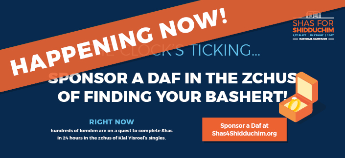 This is your last chance! If you, or someone you know, is in search of a shidduch, sponsor a daf and be a part of this amazing mission! Right