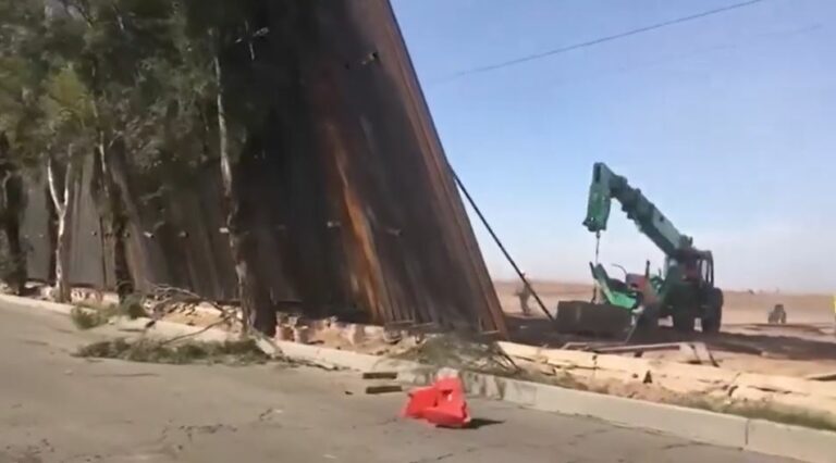 Strong winds gusting across Southern California have toppled several panels of a new barrier being installed along the U.S.-Mexico border, a newspaper reported. The U.S. Border Patrol said the panels