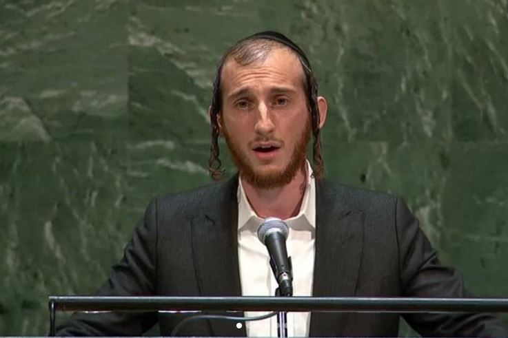 Singer Shulem Lemer sang Ani Ma’amin and Kal Malei Rachamim at the United Nations Holocaust Memorial Ceremony at the United Nations Headquarters in Manhattan on Monday. The ceremony marked 75