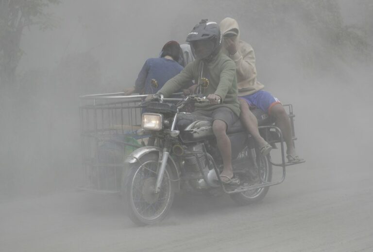 Red-hot lava spewed from a volcano near the Philippine capital of Manila on Monday as tens of thousands of people fled through heavy ash and frightening tremors, and authorities made
