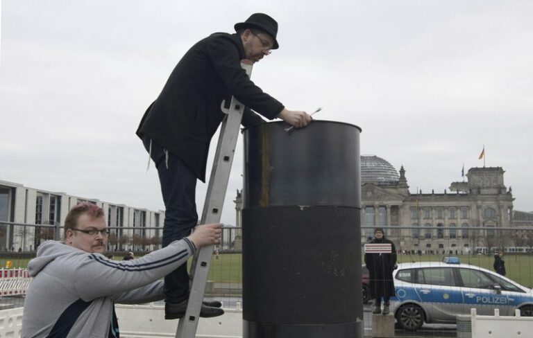 Activists said Sunday that Berlin police prevented them from dismantling an art installation that angered Jewish groups after those who erected it claimed it contained Holocaust victims’ remains. A group
