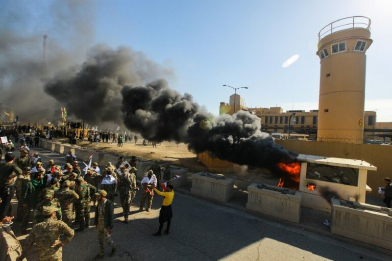 Thousands of rioters and Iran-backed militia fighters stormed the United States embassy in Baghdad on Tuesday in protest of the US airstrikes in Iraq and Syria on Sunday against Kata’ib