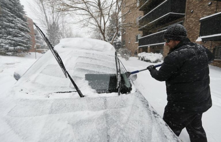 Heavy snow and wind shut down highways Tuesday in Colorado and Wyoming, prompted school closures in Nebraska and forced more than 1,000 travelers to sleep overnight in Denver’s airport after