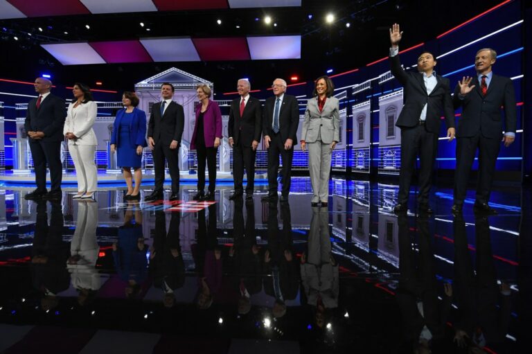 Democratic presidential candidates clashed in a debate over the future of health care in America, racial inequality and their ability to build a winning coalition to take on President Donald