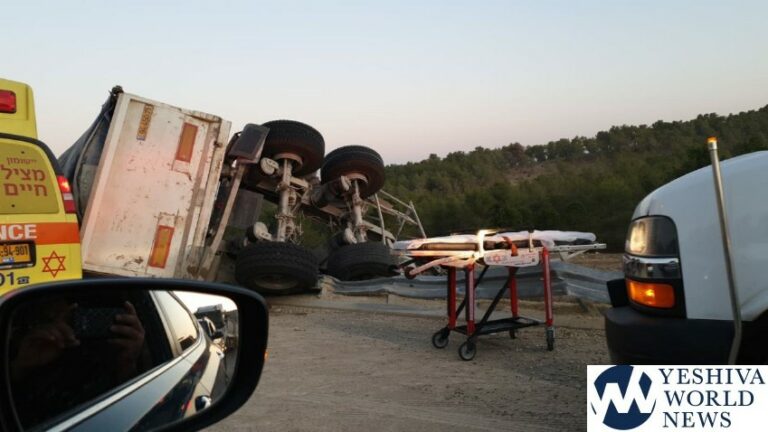 (PHOTOS IN EXTENDED ARTICLE) A 35-year-old truck driver sustained moderate injuries in a one-vehicle accident on Highway 6 near the Lahavim Interchange. According to United Hatzalah, the driver was extricated