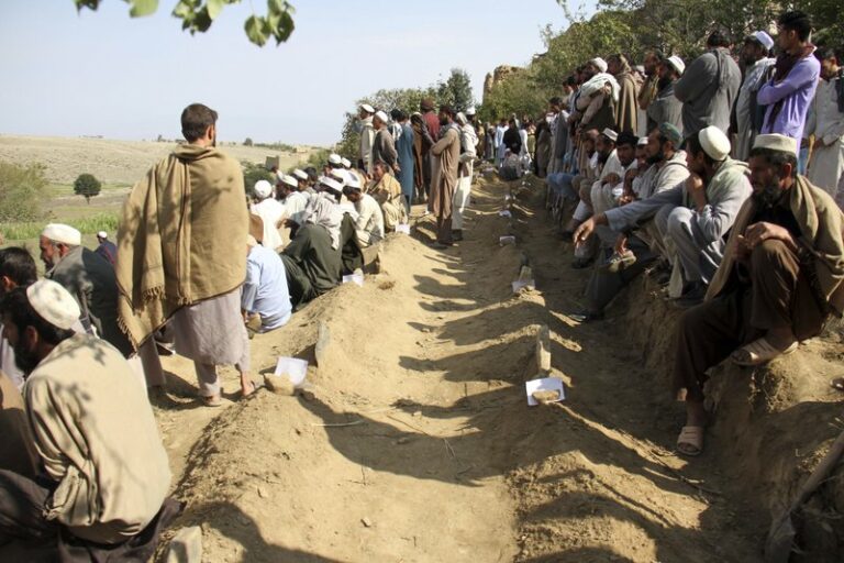 Hundreds of villagers attended the funerals held Saturday in eastern Afghanistan for the victims of a deadly bomb that killed 66 people during prayers at a local mosque. Attahullah Khogyani,