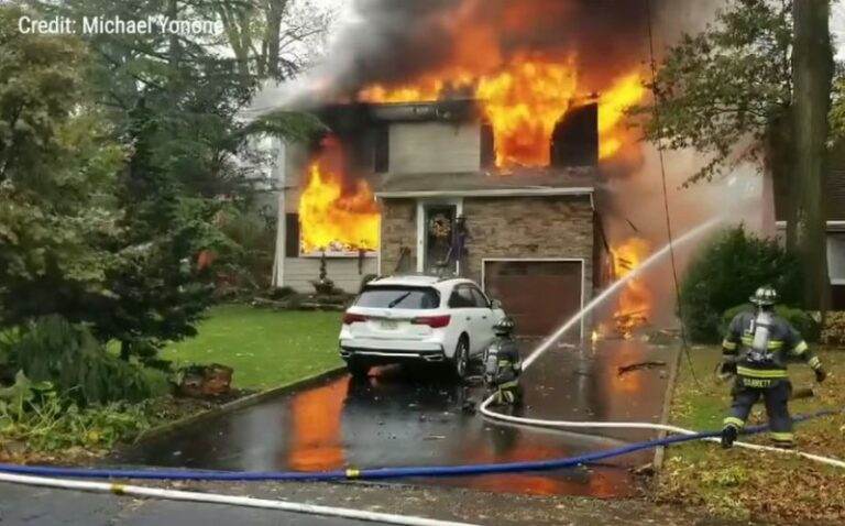 A small plane crashed and exploded in a residential neighborhood in the New Jersey suburbs of New York City on Tuesday morning, setting two houses ablaze and leaving the pilot