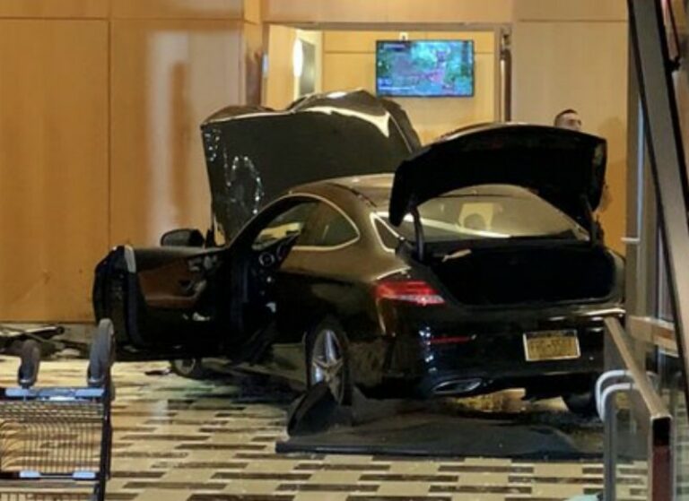 Police say a car has smashed through the glass-doored front lobby of the Trump Plaza in New Rochelle, New York. Authorities told WABC-TV the incident Tuesday night does not appear