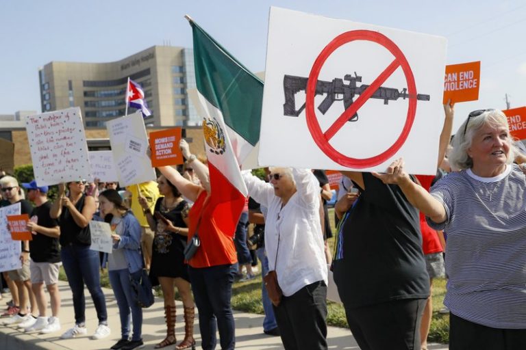 President Donald Trump expressed a commitment Sunday, hours after the latest deadly mass shooting, to work with a divided Congress to “stop the menace of mass attacks.” He said any