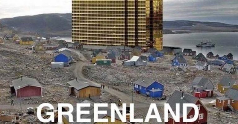 President Donald Trump is making light of his own idea of buying Greenland from Denmark, tweeting a doctored photo of Trump Tower looming over a small village in the Arctic