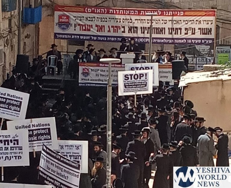 Some 500 charedim participated in protests against conscription into the IDF on Tuesday that brought them to the gates of the United Nations (UN) Headquarters in Jerusalem. The group handed