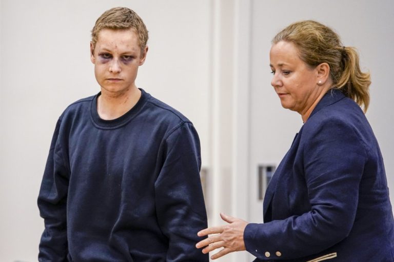 A Norwegian man suspected of killing his stepsister and then storming an Oslo mosque with guns appeared in court Monday with a smirk on his bruised face as evidence grew