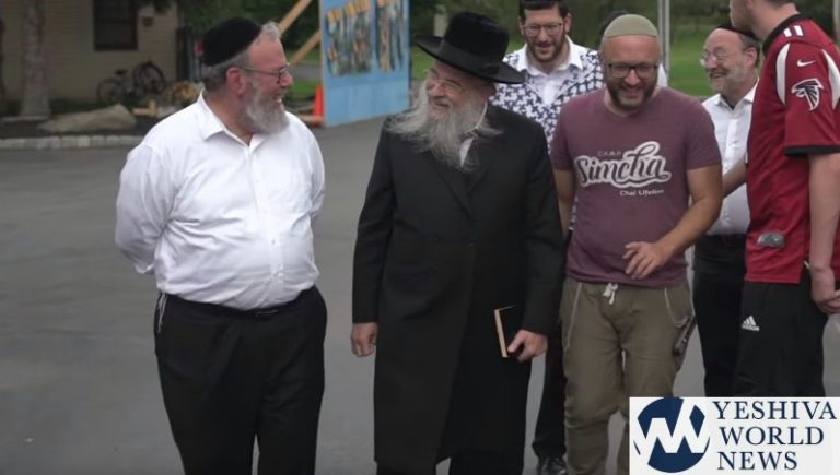 Hagaon HaRav Noach Isaac Oelbaum, noted Posek and Mora D’Asra of Khal Nachlas Yitzchok in Queens, visited Camp Simcha on Sunday. Rav Oelbaum toured the campus, met with campers and