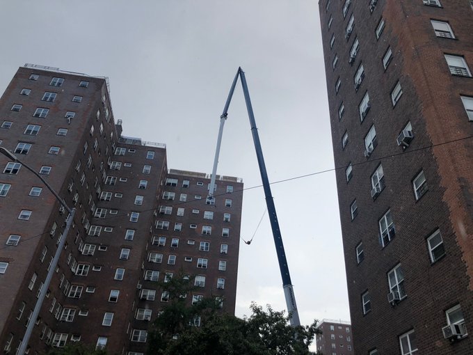 Authorities temporarily shut down FDR Drive in both directions around East 6th Street after a freestanding crane boom partially collapsed on a building in the East Village on Tuesday. The