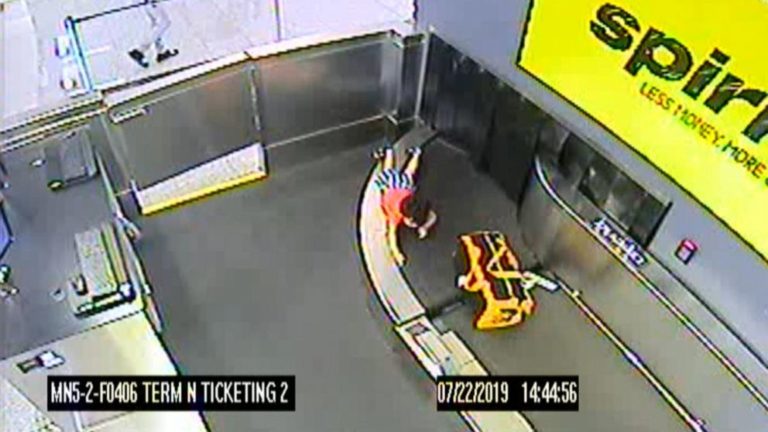 Surveillance cameras at the Hartsfield-Jackson Atlanta International Airport caught the journey of a curious toddler who climbed onto a baggage conveyor belt and took a trip through the baggage system.