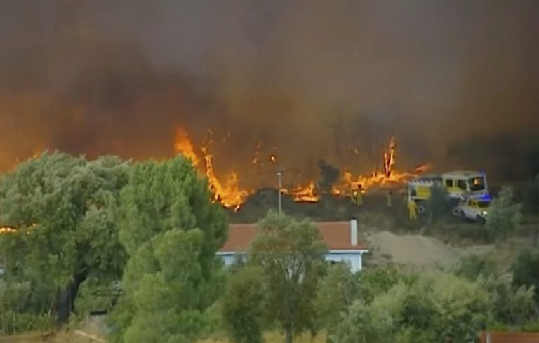About 1,800 firefighters were struggling to contain wildfires in central Portugal that have already injured 20 people, including eight firefighters, authorities said Sunday. The fires broke out Saturday across three