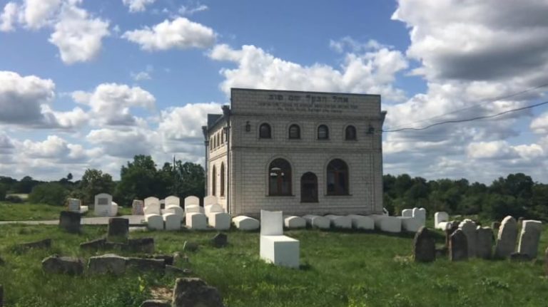 While on a pilgrimage to the town of Mezbiuz in Ukraine to visit the Kever of the Baal Shem Tov, a group of Charedim were shocked to see a group