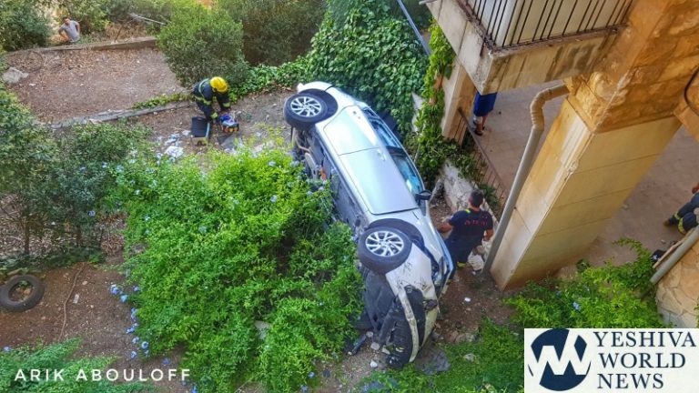 An elderly woman was moderately injured, after her vehicle plunged off a two story parking lot in Jerusalem, Monday morning. Fire & rescue officials rushed to the scene on Tzernikovsky