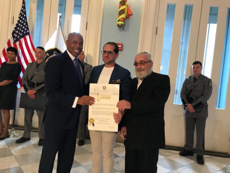A Jewish man who saved a suicidal man from jumping to his death off the Verrazano Bridge, was given an award by the Brooklyn Boro President. Boro President Eric Adams