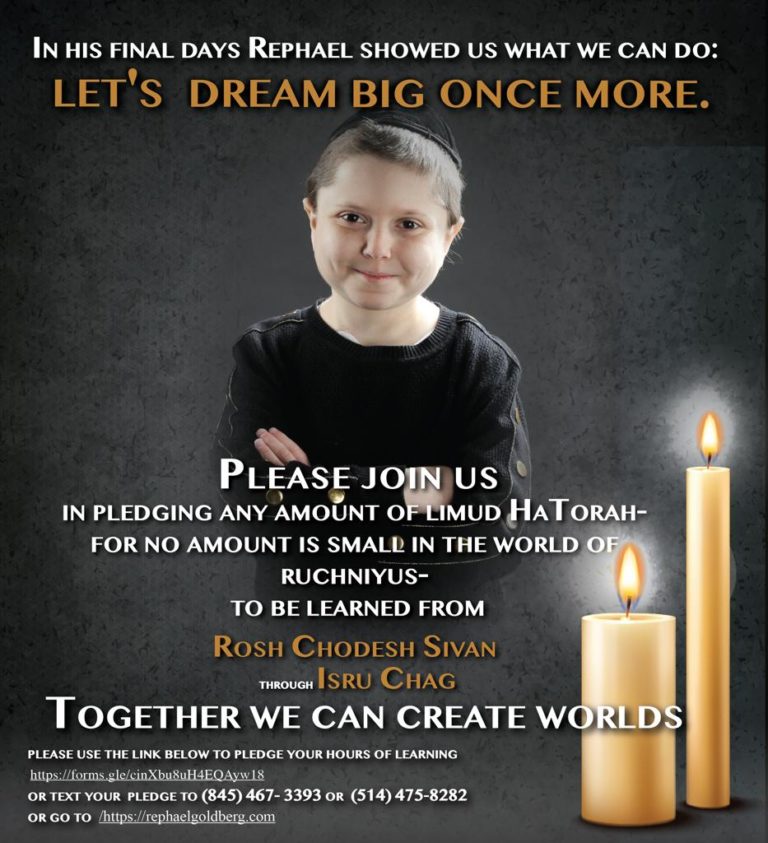 Rephael Goldberg A’H had 2 special passions in his short, impactful life; LEARNING TORAH & BRINGING YIDDEN TOGETHER. In his final days, he succeded in reaching, inspiring and uniting brothers
