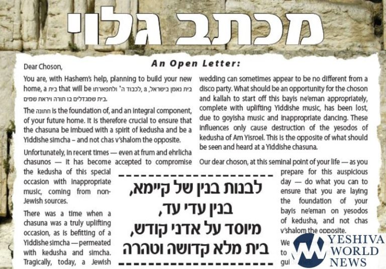 A new list of rules for weddings was recently released, and undersigned by prominent Rabbonim. The rules are regarding the music at wedding. The text below has been transcribed by