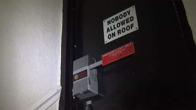 Police say a woman survived a fall from a five-story Manhattan apartment building, tumbling as she apparently was descending from the roof after taking skyline photos with friends. The 22-year-old