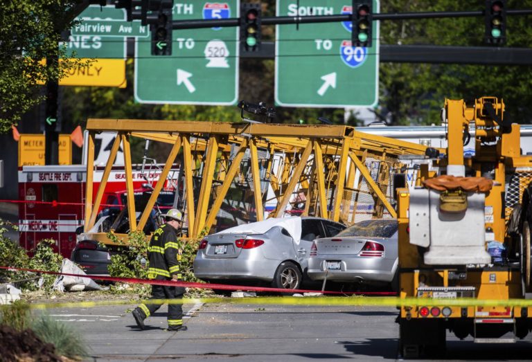 Four people died and three were injured when a construction crane on the new Google Seattle campus collapsed Saturday, pinning six cars underneath. One female and three males were dead