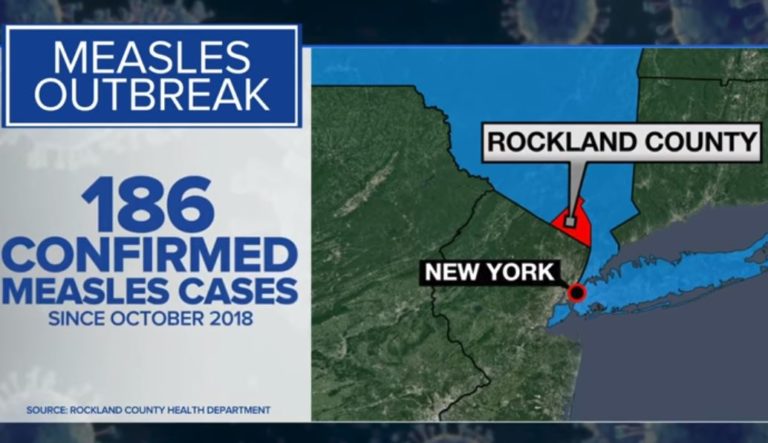 Officials trying to contain a measles outbreak in a county north of New York City on Tuesday ordered all unvaccinated people exposed to the disease barred from public gathering places,