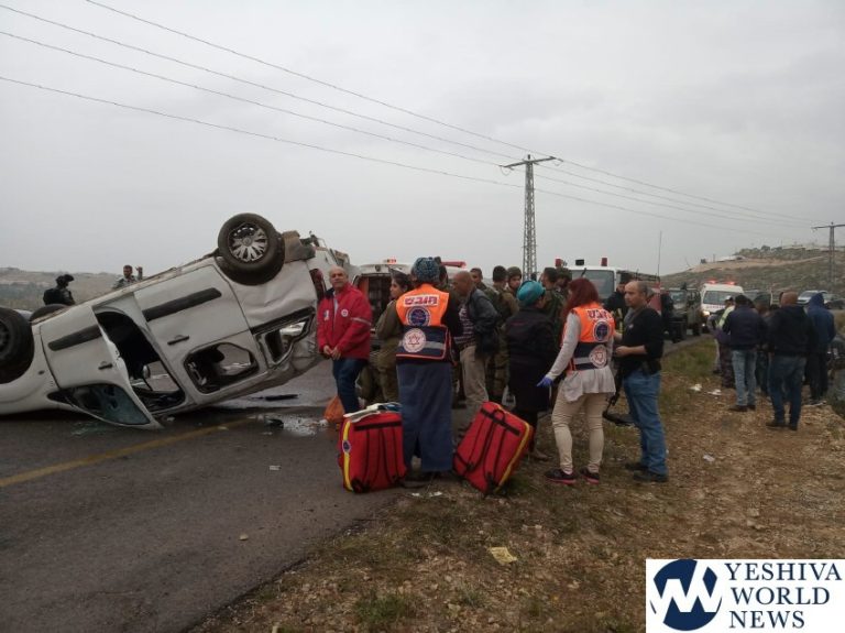 A motor vehicle accident between two vehicles in the S. Hebron Hills area on Monday left a total of 13 persons injured, six Israelis and seven Palestinians. The accident occurred