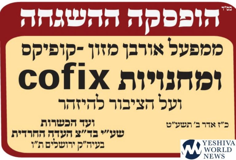 The Badatz Eida Chareidis announced that it is no longer providing kashrus certification for some Cofix stores and the factory. While most Cofix stores around Israel are not under the