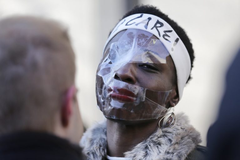 A woman who climbed the base of the Statue of Liberty last July 4 to protest the separation of families at the Mexican border came to her sentencing Tuesday with