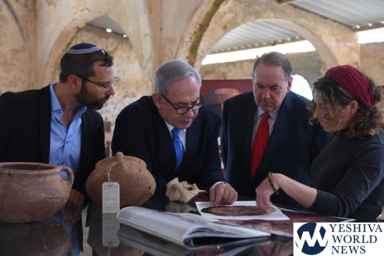 Working his audience during a visit to Tel Shilo on Tuesday, March 19, 2019, the site of the Mishkan, Prime Minister Binyamin Netanyahu warned that if the Blue and White