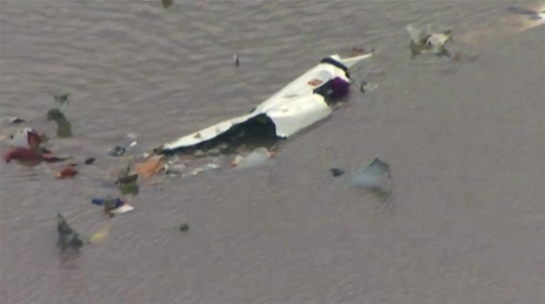 A Boeing 767 cargo jetliner heading to Houston with three people aboard disintegrated after crashing Saturday into a bay east of the city, according to a Texas sheriff. Witnesses told