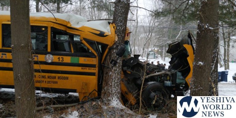 A school bus with children on board slid out-of-control, and slammed into a tree in Monsey on Wednesday afternoon. Rockland Hatzolah, along with other emergency personnel, were at the scene