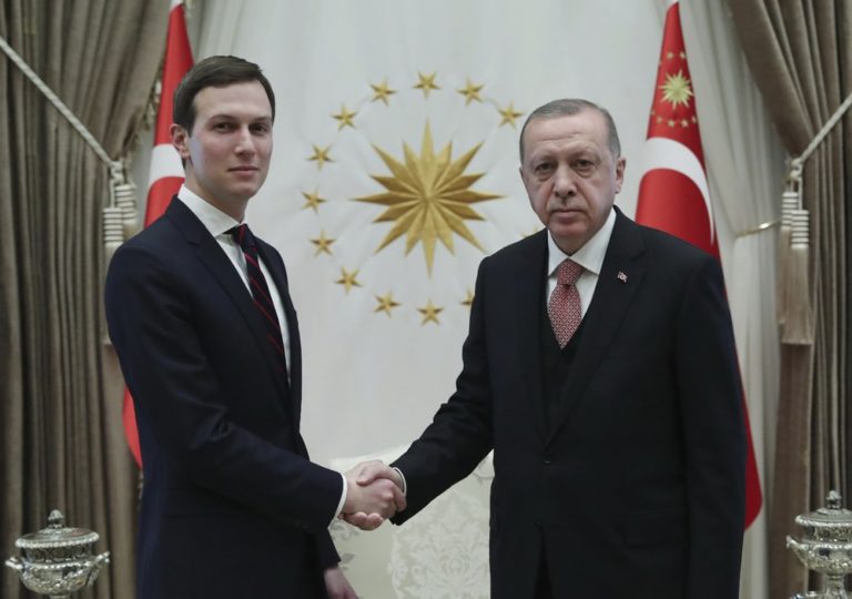 Turkish President Recep Tayyip Erdogan met Wednesday with Jared Kushner for talks focused on the Trump administration’s planned but as-yet unveiled Middle East peace initiative. Erdogan’s office said the meeting