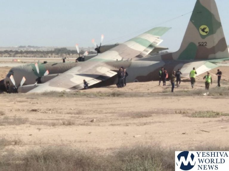 An Israeli Air Force “four-engine C-130 Hercules plane” rolled about 100 meters and landed in a ditch, Wednesday morning. The incident happened during an “on the ground engine test”, as