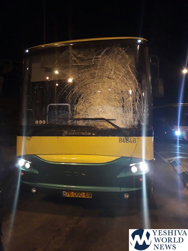 The accompanying photo speaks for itself. Aanother rock-throwing attack by Arabs, this time, at about 11:30PM on Monday, near the Arab village of Hizme, which is between the Pisgat Ze’ev