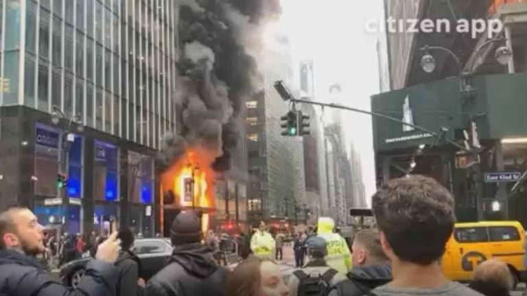 Firefighters are responding to a blaze at a Midtown high-rise office building. The New York Fire Department said Friday morning that no injuries have been reported. Five dozen firefighters responded
