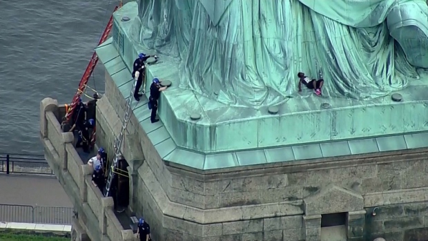 A woman who climbed the base of the Statue of Liberty on July 4 to protest the separation of families at the Mexican border was convicted Monday of misdemeanor charges
