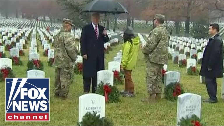 President Donald Trump made an unannounced visit to Arlington National Cemetery on Saturday for a holiday commemoration. In a steady rain, Trump visited the cemetery during an annual event in