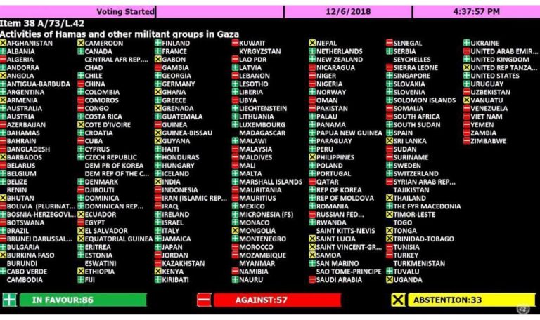 A U.S.-sponsored draft resolution that for the first time would have condemned the Islamic terror group Hamas, which controls Gaza, failed to win the required two-thirds majority in the U.N.