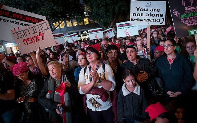 Tens of thousands of protesters marched in Tel Aviv on Tuesday against what they see as the Israeli government’s inadequate response to violence against women. Red-capped demonstrators called for Prime