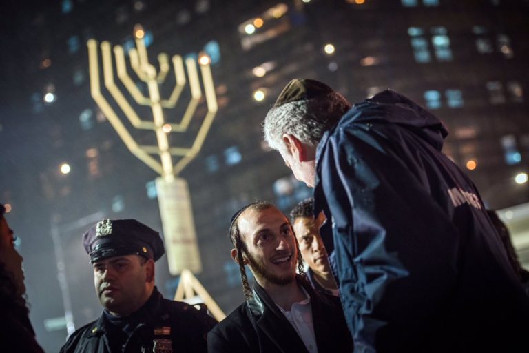 Over 2,500 people braved the rain for the annual Chanukah celebration at Brooklyn’s Largest Menorah. NYC Mayor Bill DeBlasio was honored with lighting the Shamash. Pey Dalid band and singer