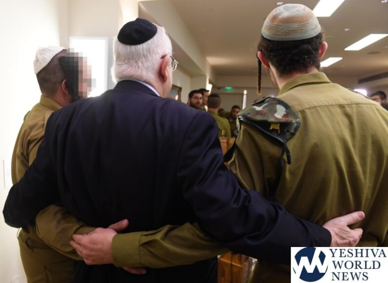 Israeli President Reuven Rivlin lit Chanukah candles for the first night of Chanukah with IDF combat soldiers from various Charedi units. Among those present were soldiers from Tomer in Givati,