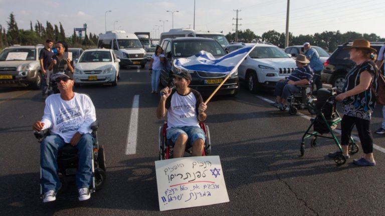 Sharon district police on Tuesday were compelled to face off against disabled protestors who decided to block traffic near Kibbutz Yakum at about 3:00PM. The protestors blocked the train tracks