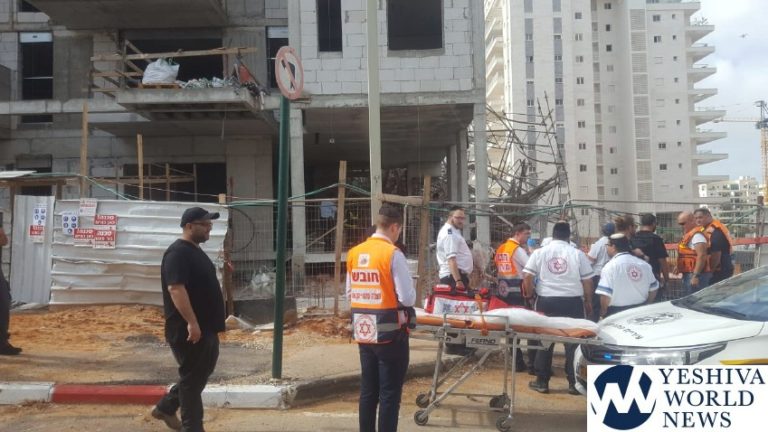 (VIDEOS AND PHOTOS IN EXTENDED ARTICLE) EMS units on Tuesday morning, at about 10:30AM, responded to a construction accident in the Yarkon district, as a construction scaffold at a building